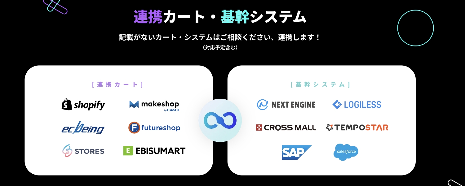 「CoreLink for TikTok Shop」の連携予定カート/連携予定システムは次の通りです。