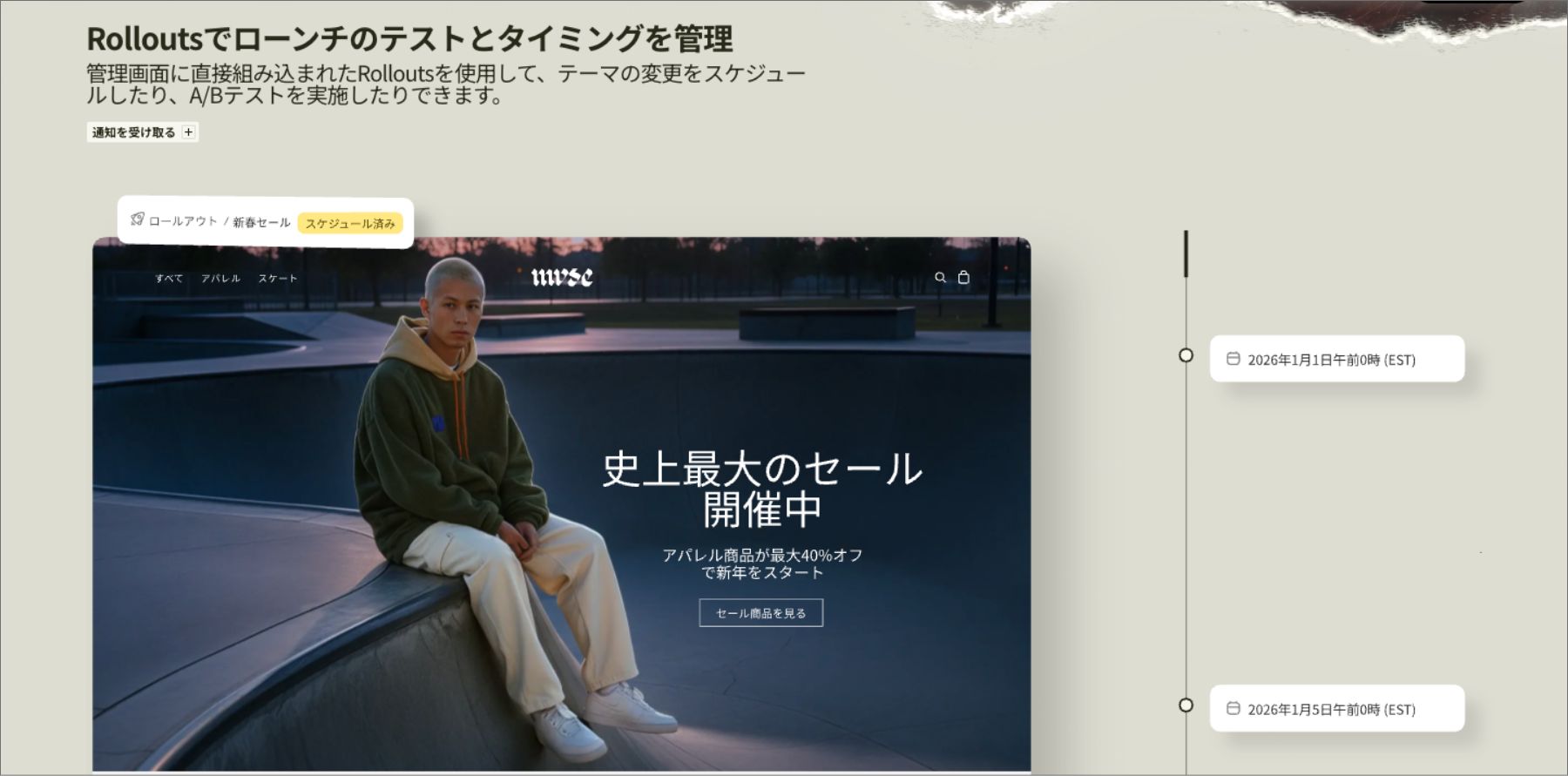 Rolloutsは、オンラインストアの実験・検証・最適化を行うことができる機能です。