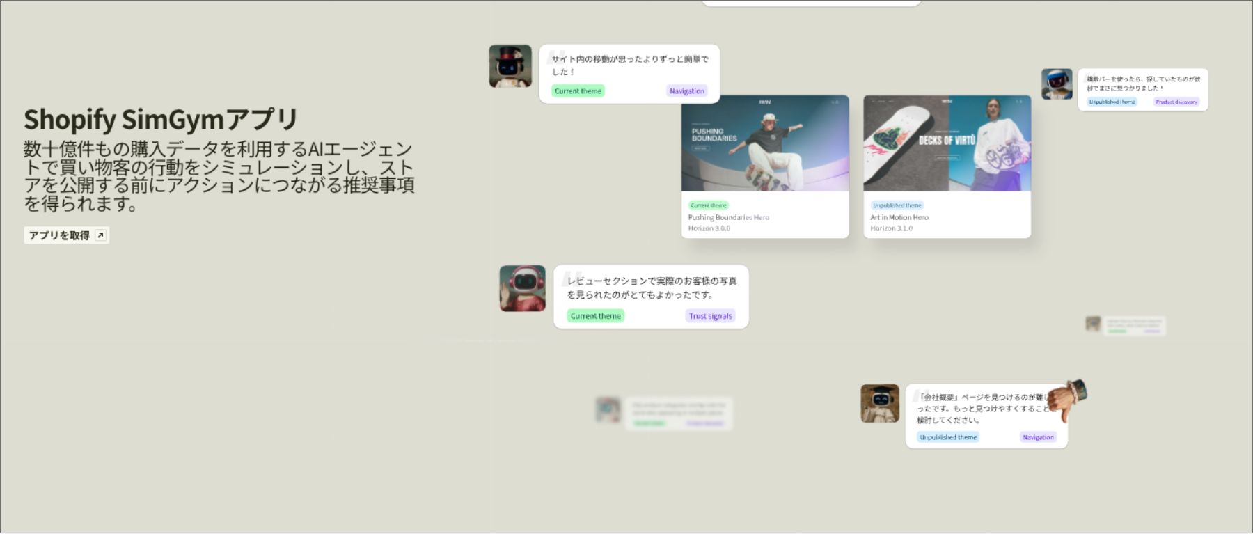 SimGymが作成するAIユーザーは、本物のお客様のようにストアを閲覧し、本物のお客様のように商品をカートに入れて購入します。そしてその結果をフィードバックしてくれます。このシミュレートによって、ストアの変更がパフォーマンスに与える影響を公開前に確認できるようになります。